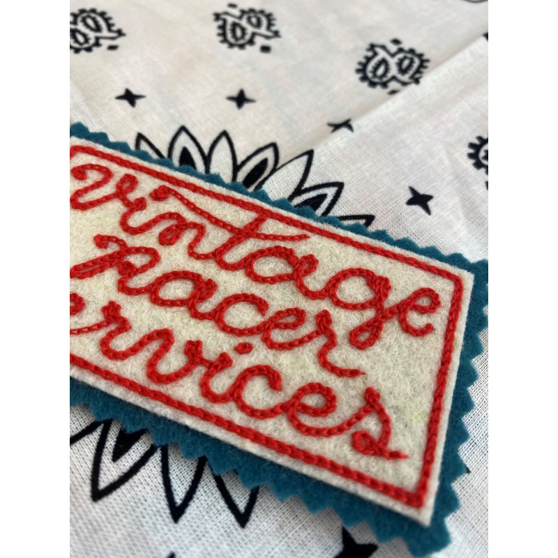 Patchs en feutre fait main, Vintage Racer Services, Broderie Chainstitch à main levée.